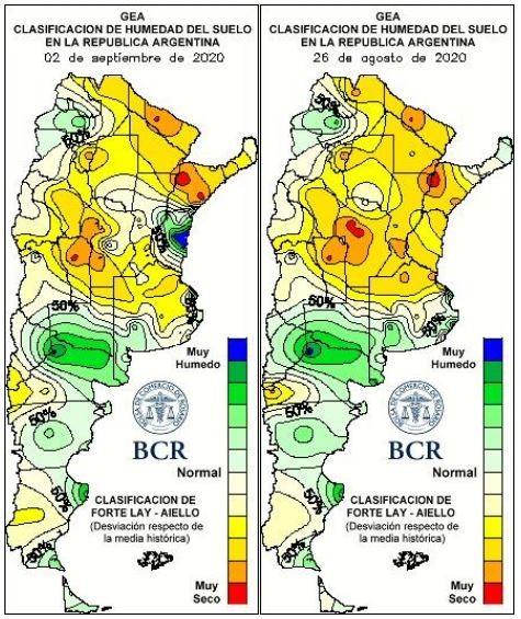 Se comenzará a fertilizar los lotes para la siembra maicera en la semana próxima. Algunos quieran arrancar sin demoras el 15 de setiembre, otros esperarán nuevas lluvias de 20 a 30 mm para animarse. Los análisis de humedad del perfil de algunos lotes revelan que la escasez de agua está en el primer metro y que estas lluvias empiezan a descontar los milímetros que le faltan al cereal. En las zonas más deficitarias advierten que si las lluvias de septiembre y octubre no acompañan, algunos pasarán a soja de primera o se decidirán por hacer un maíz tardío en diciembre. Por ahora, la intención de siembra de maíz en la región núcleo sostiene una caída de un 7% respecto a la campaña 2019/20.