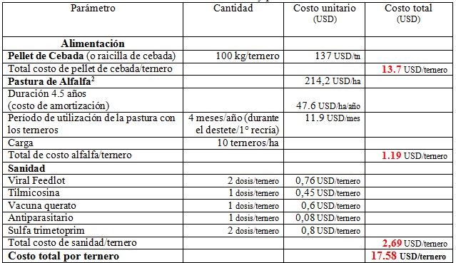 En la Tabla 3 se presentan los costos “actualizados” (USD/ternero) de la