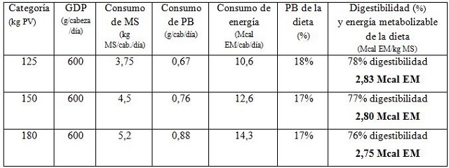 y/o disponibilidad suficiente como para mantener altas ganancias de peso al pie