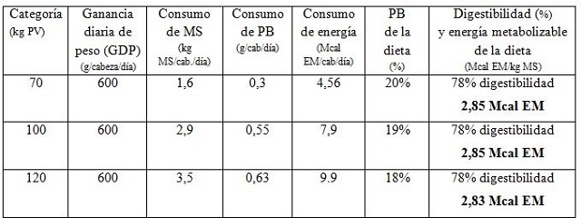 casos, el objetivo es alcanzar buenas ganancias de peso (500-700 g/día). Para