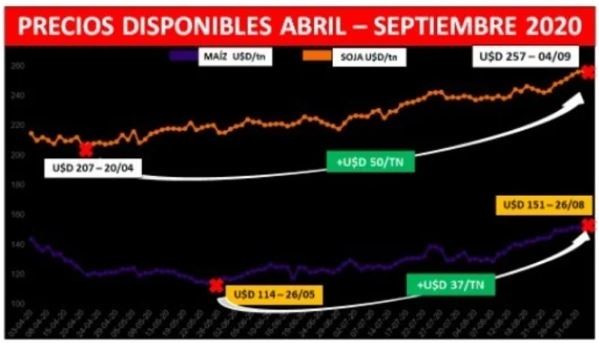 Una semana más y seguimos volando en alturas de precios que resultaban inimaginables a principios de Abril de este año, es decir al comienzo de la recolección 19-20. Entrábamos en cosecha con una demanda mundial anclada en cuarentenas generalizadas y un consumo de bienes y servicios destruido y sin destino. Vivimos un precio del barril de petróleo en precios negativos aquel lunes 20 de abril y todo se veía negro y con futuro incierto. Desde aquel momento, llegamos a la fecha actual unos 5 meses después en valores que debemos cuantificar como impensadamente positivos, que piden ser tomados desde las ventas o las coberturas. Pero veamos primero a una imagen que detalla claramente lo descripto.