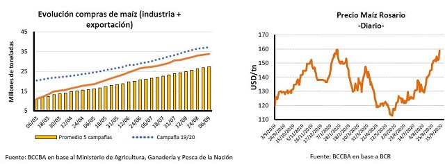 En Argentina, las ventas de maíz de la campaña 2019/20, tanto a la industria como a la exportación, alcanzan los 37,3 millones de toneladas, una cifra récord para nuestro país, siendo el sector exportador el principal protagonista con más de 33,4 millones de toneladas comprometidas.
