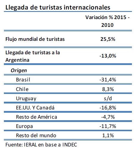 Esta dinámica ya se vivió durante el cepo anterior, con una fuerte pérdida de participación de la Argentina en el mercado del turismo: entre 2010 y 2015, mientras el flujo mundial de turistas creció un 25,5 % entre puntas, el arribo de extranjeros al país cayó un 13,0 %, una brecha de nada menos que 38,5 puntos porcentuales. Un costo altísimo en términos de ingresos de divisas al país y de generación de empleos.