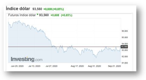El cuadro que sigue es elocuente. Y muestra la debilidad actual del dólar estadounidense, algo muy conveniente para las exportaciones argentinas.