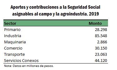 Para analizar los Aportes a la Seguridad Social del campo y la agroindustria, se procedió de forma análoga a la metodología aplicada en impuesto a las ganancias, aprovechando la desagregación sectorial del anuario estadístico de AFIP y tomando en consideración los mismos sectores y participaciones.
