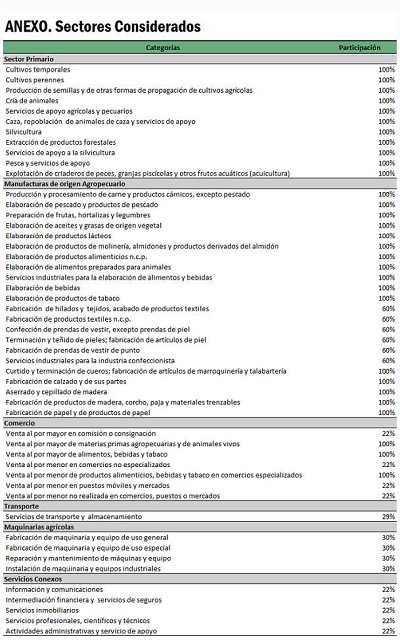 Se contempló en el análisis las cadenas de oleaginosas y cereales, harinas, aceites y demás derivados de su industrialización; el sector bovino, porcino, avícola, lácteo, algodonero, pesquero, forestal, la industria del tabaco, el sector frutícola, hortícola, y las producciones agroindustriales correspondientes a las economías regionales.