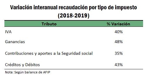 En este cálculo, está implícito el supuesto de que lo recaudado por la actividad del campo y la agroindustria varió en la misma proporción que el total de la recaudación nacional entre el año 2018 y el año 2019. Es decir, el sector mantuvo sin cambios su participación relativa en el total de la recaudación nacional.