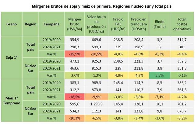 Con todo, la campaña 2020/2021 estará signada por la evolución de las lluvias. En ese marco las decisiones de siembra se regirán en mayor medida por cuestiones climáticas que económicas, teniendo en cuenta que las segundas serán las determinantes a la hora de concretar los rindes y márgenes efectivamente observados.