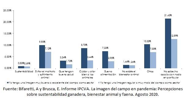En general, la asociación de la sustentabilidad de la ganadería con la posibilidad llevar adelantela actividad sin perjudicar el medioambiente, la sustentabilidad económica, así como aquella ligada al arraigo que promueve en el interior del país suele provenir de aquellas personas que poseen una mejor imagen del campo.(Gráfico 1)