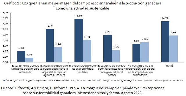 Gráfico 1 : Los que tienen mejor imagen del campo asocian también a la producción ganadera como una actividad sustentable