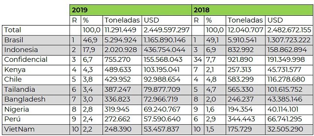 • Brasil: soja, maíz, caña, poroto, eucalipto, algodón