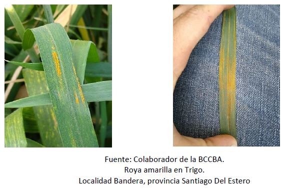 Dentro de las enfermedades que atacan al trigo, se reportó roya amarilla (Puccinia striiformis) y roya anaranjada del trigo (Puccinia triticina), con incidencia media en cultivares sensibles.