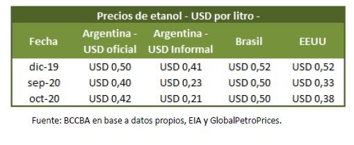 alternativo, como el dólar informal, donde el precio del litro de etanol bajaría