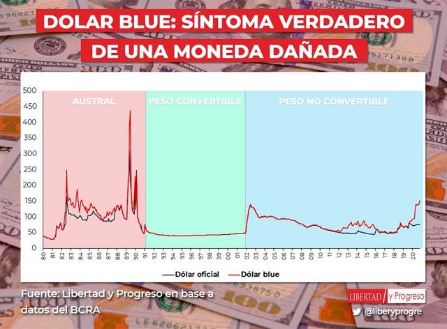 Aldo Abram, Director Ejecutivo en la Fundación Libertad y Progreso indica que "Un riesgo país de más de 1.400 puntos porcentuales es una señal de que los nuevos bonos emitidos para el reciente canje de deuda serán reestructurados en el mediano plazo y con una quita tan importante como la que ya tuvieron. Mientras que los valores actuales de los dólares paralelos están reflejando el enorme riesgo de quedarse en una moneda que va rumbo a depreciarse fuertemente en un contexto de crisis. O sea, no hay nada incoherente en las cotizaciones de los mercados argentinos. El problema es que descuentan que el actual gobierno seguirá con el actual rumbo económico; por eso el valor de nuestra moneda y de los activos argentinos señalan una buena probabilidad de una crisis en el corto o mediano plazo".