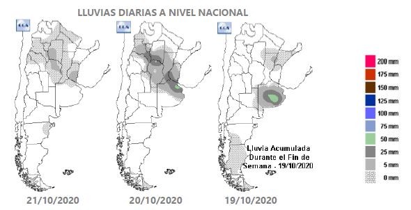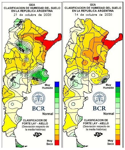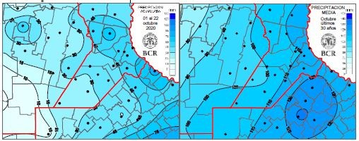 Casi toda el agua que se muestra como acumulada en los últimos 22 días, en realidad solo se acumuló a partir del 19 de octubre. Y hay muchas chances de que entre el sábado y domingo próximo vuelva a llover de forma importante en la región centro. De esta manera, los últimos 10 días de octubre podrían sumar el 90% de las lluvias que muestra la media histórica de octubre. Y esto es una señal muy fuerte de que se estaría quebrando el bloqueo seco que ha acechado a la región en los últimos seis meses. Esa es la gran noticia que estaría mostrando fines de octubre si se concreta el pronóstico de lluvias. Y las chances son muy buenas: los modelos se muestran firmes y los mecanismos de circulación están muy activos para este fin de semana. Las lluvias empezarían a normalizarse, incluso con una "Niña" de fondo.