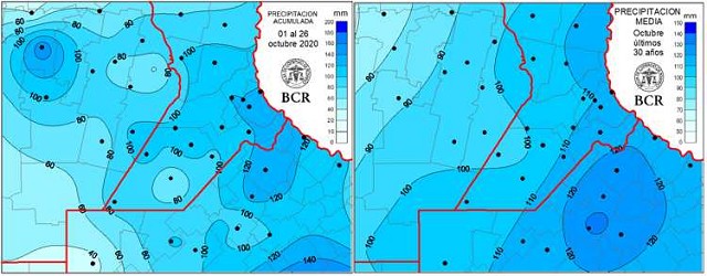 La media histórica de los últimos 30 años muestra para octubre lluvias entre los 90 y los 120 mm. Con este segundo evento consecutivo de lluvias, la región alcanzó, en menos de 10 días, el 90% de las lluvias históricas de octubre.