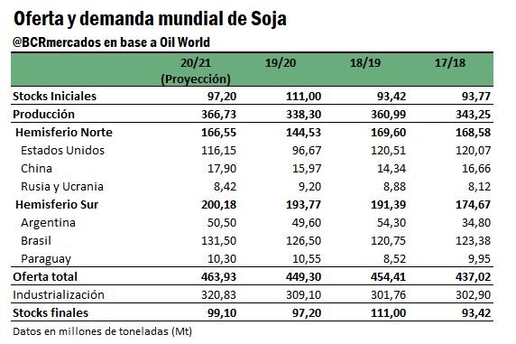En su último informe, el organismo alemán prevé un panorama ajustado las cadenas globales de oleaginosas, producto de una reducción en su estimación de stocks iniciales, sumado a una rebaja en las previsiones de producción en los Estados Unidos, Argentina y Brasil. Al mismo tiempo, destaca la política de venta de los productores en nuestro país y la fuerte demanda por parte de China, como factores que vienen impulsando la escasez relativa y la suba en los precios de la oleaginosa.