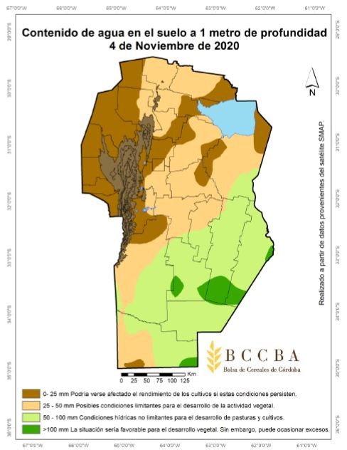 Luego de las lluvias de fines de octubre y principios de noviembre se observan buenas condiciones hídricas para el sudeste de la provincia, favoreciendo la siembra de los cultivos estivales. Por otra parte, el oeste y norte provincial continúan en una situación de estrés hídrico, lo que dificultó la siembra y llevaría a una mayor proporción de cultivos tardíos.