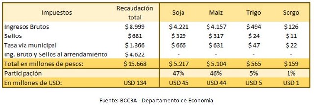 Del potencial monto a recaudar, un 79% provendría del impuesto a los Ingresos Brutos, un 13% al Impuesto a los Sellos y un 8% a la tasa vial municipal.