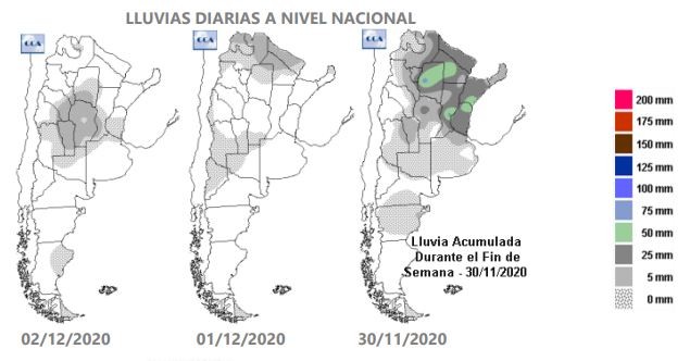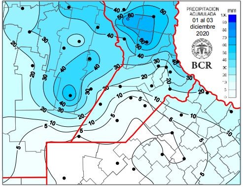 Sorprendieron las lluvias de los últimos días, y para bien. El oeste de Córdoba recibió mucho más: 20 a 40 mm con lluvias puntuales destacadas, como en Canals con 60 mm. También el centro sur de Santa Fe recibió un empujón de diciembre: las tormentas dejaron entre 20 a 60 mm. El sector de Irigoyen y Classon fue muy beneficiado. Se reactivaron las lluvias", festejaban en Carlos Pellegrini por los 50 mm que recibieron entre el martes y el miércoles más los 60 mm del fin de semana pasado. “Con estas lluvias ahora hay muy buenas expectativas para la soja de segunda de segunda”, dicen, algo que parecía imposible 7 días atrás.