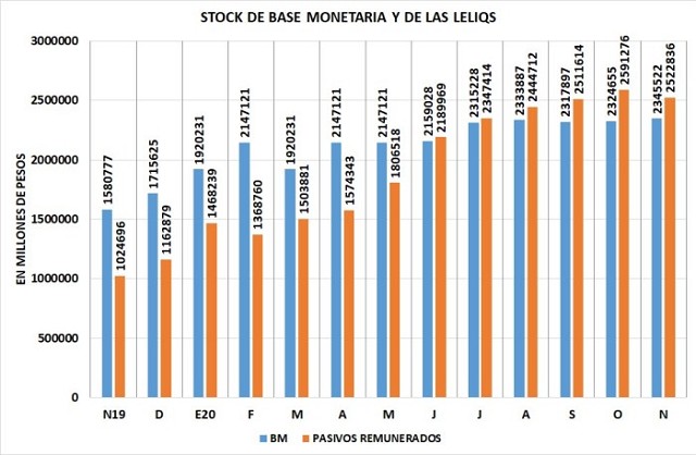 Cambiemos recibió un stock de $ 300.000 y terminó entregando un stock de LELIQs y PASES de $ 1 billón. Y el kirchnerismo recibió un stock de $ 1 billón de LELIQs y PASES de Cambiemos y ahora está en un nivel de $ 2,6 billones.