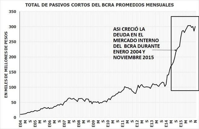Eso lo llevó a depender del financiamiento externo que si se cortaba, como efectivamente se cortó, lo dejaba colgado del pincel. Pero, además, como la deuda había que transformarla en pesos para hacer los pagos de sueldos, subsidios, gastos, etc., el BCRA emitía pesos para dárselos al tesoro y luego absorbía parte de esos pesos colocando LEBACs, generando un arbitraje financiero que objeté oportunamente mientras que hoy, candidatos opositores al gobierno llamados libertarios, defendían la política del BCRA de endeudarse con LEBACs. Esa defensa se hizo hasta fines de 2016, un año después de haber asumido cambiemos e incluso entrado 2017.