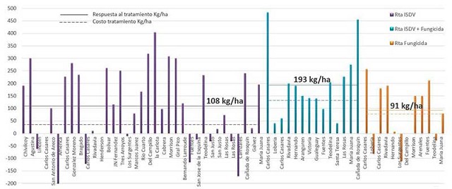 Los resultados de numerosas experiencias muestran una tendencia favorable para el uso de fungicidas, aunque varía de acuerdo con la región considerada, momento de aplicación y es muy dependiente del ambiente del año de la aplicación (Formento et al., 2001; Arévalo, 2002; Ploper et al., 2003; Arias et al., 2004). De esta manera, la importancia de las EFC en soja justifican la estrategia de utilizar fungicidas para evitar daños y pérdidas y por ello resulta necesario determinar la eficiencia de diferentes moléculas y sus mezclas para este complejo fúngico.
