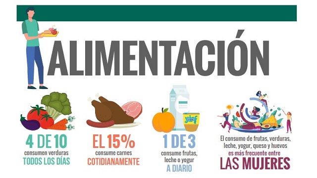 ● El consumo de frutas, verduras, leche, yogur, queso y huevos es más frecuente entre las mujeres. Esos alimentos se consumen más en Mendoza, mientras que Córdoba es una de las ciudades que menos lo hace.