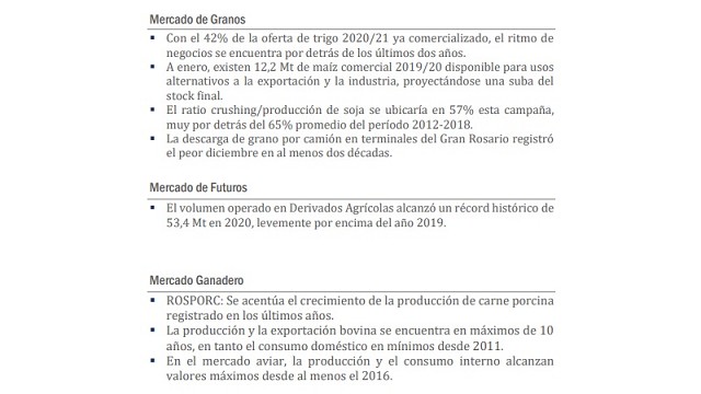 + Con el 42% de la oferta de trigo 2020/21 ya comercializado, el ritmo de negocios se encuentra por detrás de los últimos dos años.