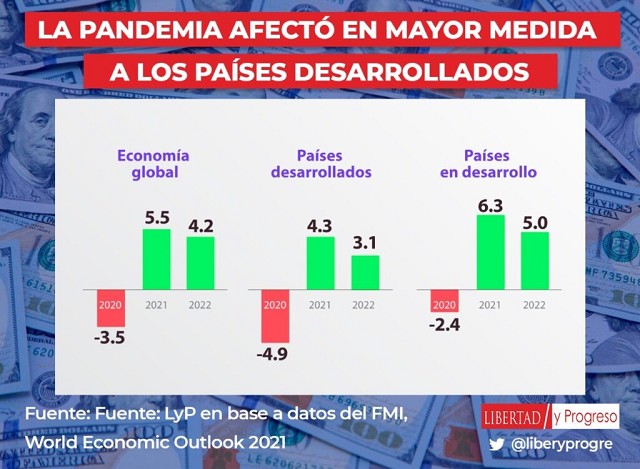 Por otra parte el informe del FMI, prevé que la economía mundial crezca un 5,5 por ciento en 2021 y un 4,2 por ciento en 2022, explicado por la recuperación de la economía. Esto queda sujeto a que las autoridades restablezcan las libertades plenas para transitar; trabajar y reunirse masivamente, en la medida en que los resultados de la vacunación sean satisfactorios.