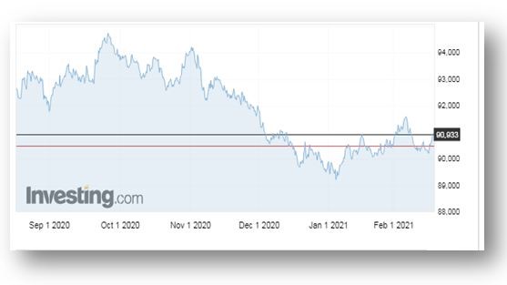 En cuanto a las variables más bien financieras, es bueno para el precio de los commodities agrícolas, que desde que asumió J. Biden, no se aprecie una tendencia creciente en el valor del dólar respecto a las principales divisas.