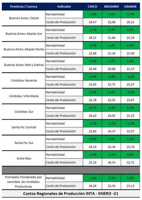 El Observatorio de la Cadena Láctea procesó toda la información generada por el INTA y le añadió algunos elementos más a esta evaluación que sigue mostrando con mayor competitividad al oeste de Buenos Aires y con mayores problemas a los tambos del centro de Santa Fe.