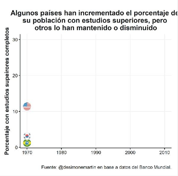 Pero lo bueno de las proyecciones es que pueden cambiar totalmente si cambiamos los factores que las determinan. Las políticas públicas tienen el poder de cambiar la trayectoria de nuestro país de manera rotunda. La experiencia de otros países nos muestra que incrementar el acceso a la educación superior es posible. Hay países que han sido muy exitosos en incrementar el porcentaje de graduados de nivel terciario. Por ejemplo, Corea del Sur tenía en 1970 la misma proporción de graduados que Argentina. Hoy tiene 10 veces más.