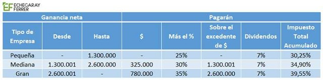 Traducido: están planteando que una gran empresa es aquella que gana más de 2.600.000 pesos y, por ello, si distribuye utilidades tributa una tasa superior al 39 por ciento.