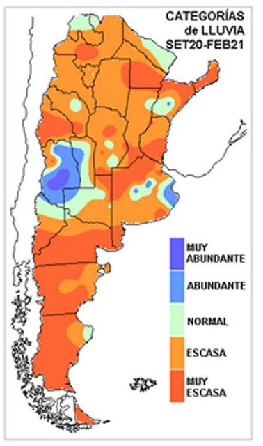 En el sur bonaerense, los cultivos de segunda implantación se van deteriorando al ritmo en que lo van haciendo las exiguas reservas que se sostienen en forma dispersa. A gran escala, gran parte del sur bonaerense ya no cuenta con reservas. Incluso si llegasen precipitaciones en forma perentoria, las mismas tendrían un impacto muy pobre en la recuperación de los cultivares, si son esperadas para el rebrote o el nacimiento de pasturas.