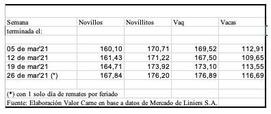 Desde los mínimos de fin de enero, se registraron siete semanas con incrementos sucesivos, sólo con alguna excepción, para novillos y jóvenes. Las vacas han tenido un desempeño más modesto, a causa de su estacionalidad.