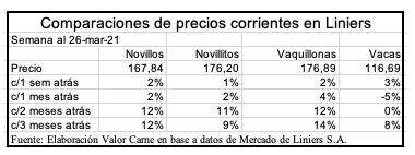Con un solo día de remates en Liniers, hasta el momento, por el feriado del miércoles, los valores se incrementaron entre 1 y 3% sobre la semana pasada, que terminó algo más alta que lo indicado en nuestro informe, a causa del aumento que hubo el viernes.