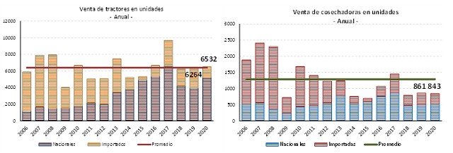 Respecto a la procedencia de las cosechadoras, tractores e implementos, se vio un incremento en la participación en las ventas de maquinaria nacional en detrimento de las importadas a comparación del cuarto trimestre de 2019, pasando de representar un 73% de las unidades comercializadas a un 92%. De estos tres, el rubro de las cosechadoras y tractores presentaron el mayor incremento en unidades nacionales vendidas, pasando de una representación del 53% en el cuarto trimestre de 2019 a una participación del 94% en el último trimestre de 2020.