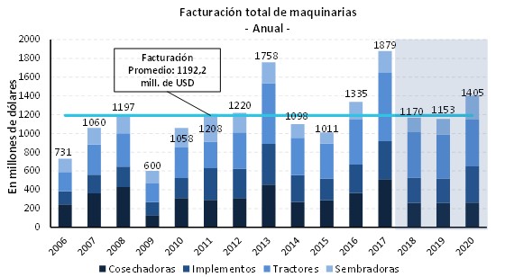 Si bien la industria aun no alcanza los niveles de venta de los años 2007 o 2008, la facturación acumulada en 2020 es superior a la de aquellos años, y se ubica en el tercer mayor volumen de los últimos 15 años, con un monto de USD 1.405 millones.