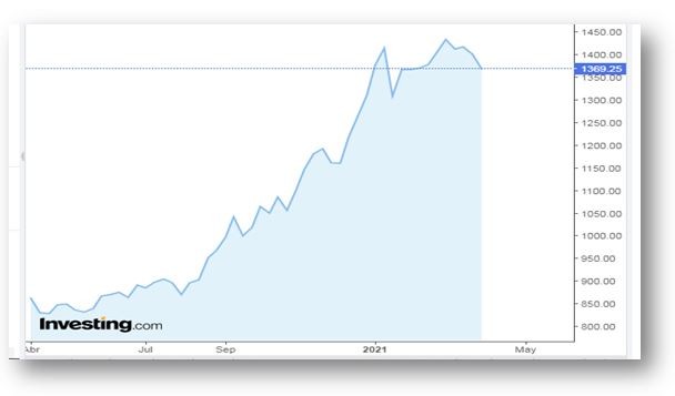 Mientras en septiembre el precio Mayo/21 giraba en torno a USD 240. Hoy lo hace en aproximadamente USD 330. Casi un 40% más.