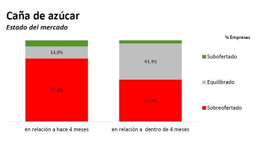 No sucede lo mismo en el caso de la caña de azúcar, en el cual la mayoría (78%) de los empresarios encuestados considera que el mercado se encuentra sobreofertado, aunque esperan que el mismo tienda a equilibrarse en los próximos meses. Un 77% de los consultados prevé un aumento de costos de producción respecto de la campaña anterior.