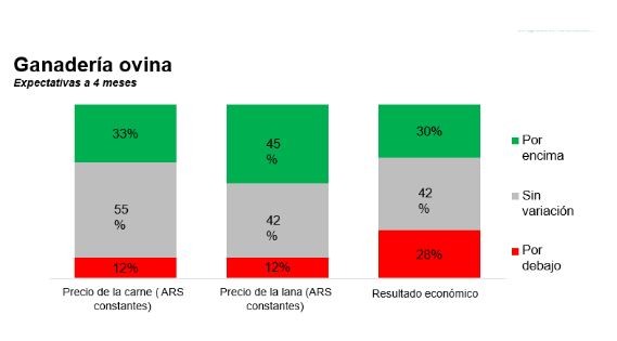 El 66% de los empresarios CREA con ganadería ovina tiene –según el relevamiento– un objetivo productivo comercial mixto, mientras que un 27% produce solamente carne y el 7% restante está dedicado exclusivamente a la actividad lanera. Un 33% y 45% de los encuestados espera mejoras en el precio de la carne y la lana, respectivamente, mientras que el 70% cree que en los próximos meses el resultado económico de la actividad se mantendrá o empeorará.