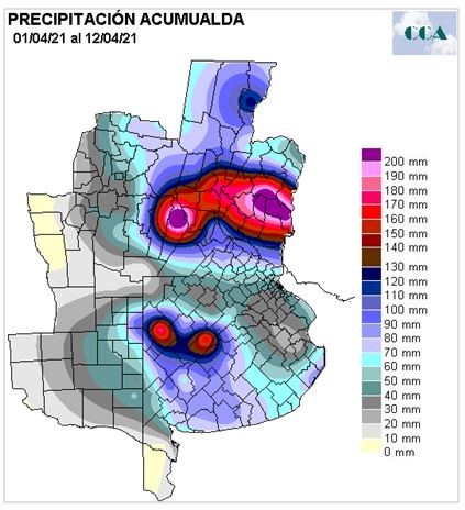 A comienzos de la semana pasada un buena parte del NEA y en menor medida el centro de la Mesopotamia, anticiparon el alto potencial pluvial de la masa de aire tropical que desde finales de marzo había quedado recirculando en el centro norte del país. Sólo bastaba la aparición de algún mecanismo de inestabilidad para que estos altos niveles de humedad se tradujeran en sistemas precipitantes destacados. Durante el lunes 5 gran parte del sudoeste chaqueño y el sudeste de SdE, confirmaron los pronósticos de precipitaciones para la zona, pero con registros que superaron los previstos. Sobre esta zona se dieron tormentas con registros que variaron entre los 80 y los 150 milímetros. Conforme se desplazaron hacia el este, estas tormentas perdieron volumen sobre el norte santafesino y el centro de Corrientes.