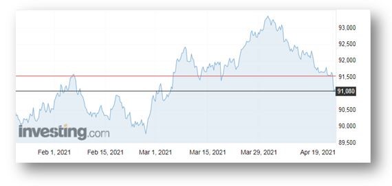 El gráfico que siguen es claro. A lo largo de abril, el dólar ha ido perdiendo valor.