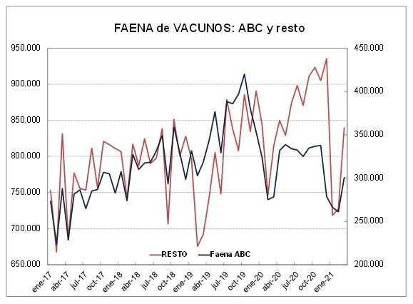 “A lo largo del primer trimestre de 2021, este comportamiento se ha estabilizado especialmente considerando que en el mes de marzo, por razones de público conocimiento, la empresa Arre Beef no pudo funcionar”, indicó Ravettino.