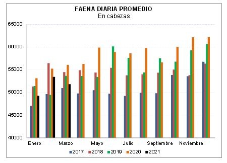 En el marzo de 2021, la faena superó en un 4% a la de doce meses atrás y en