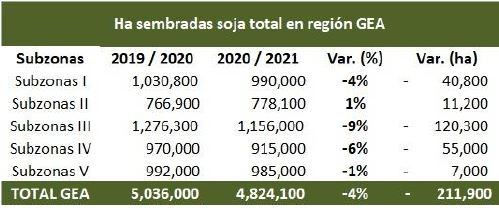 Y esta vez no es solo por la enorme disparidad que siguen arrojando las cosechadoras que cae la producción sino por lo que muestran los satélites. El NE bonaerense (Subzona III) es el área que mayor recorto soja respecto a un año atrás, con una caída del 9%. Le sigue el NO de Buenos Aires con un 6%. Evidentemente, la zona bonaerense es la que se muestra más reacia con la oleaginosa. Y también es la zona que mayores niveles de pérdida de área muestra en lotes de soja de segunda en este ciclo 2020/21.