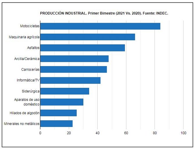Durante el primer bimestre del año, la producción del sector reportó un crecimiento interanual de 66,4% respecto a igual periodo de 2020 (antes de la pandemia), según el Índice de Producción Industrial (IPI) que publica mensualmente el INDEC.