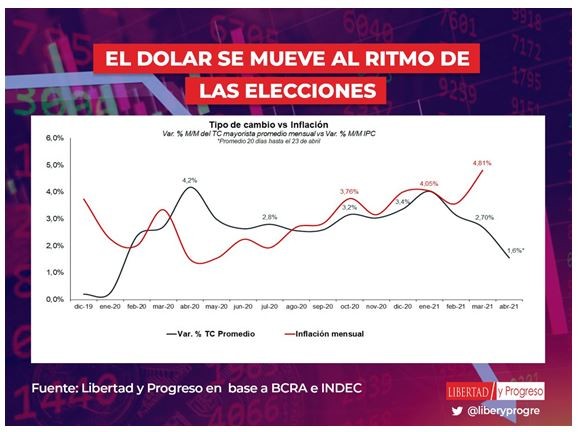 Según el Mgs. Aldo Abram, economista y director de la Fundación, “la evolución del valor de casi todos los precios de los bienes que están en las góndolas de los supermercados depende del tipo de cambio mayorista; ya que se exportan o importan. Sólo una minoría de estos últimos, que no cuentan con acceso al mercado “cepo”, dependen del dólar paralelo. Por lo tanto, el BCRA busca disminuir el incremento de los productos de la canasta básica para que la gente llegue a las elecciones mejor predispuesta con el gobierno. El problema es que el creciente atraso cambiario genera perjuicios económicos y, seguramente, luego de que la gente haya votado, habrá que corregir esta distorsión con varios meses de fuerte suba del tipo de cambio oficial. Esto no es nuevo, ya lo hicieron en 2013-14”.