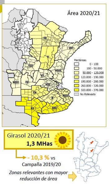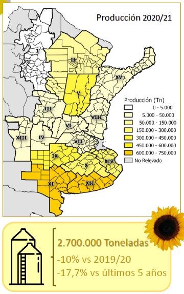 La campaña finaliza 400 mTn por debajo al escenario inicial debido a registros de precipitaciones inferiores a los promedios históricos, fallas de polinización y elevada incidencia de cancro del tallo Phomopsis helianthi durante llenado de grano